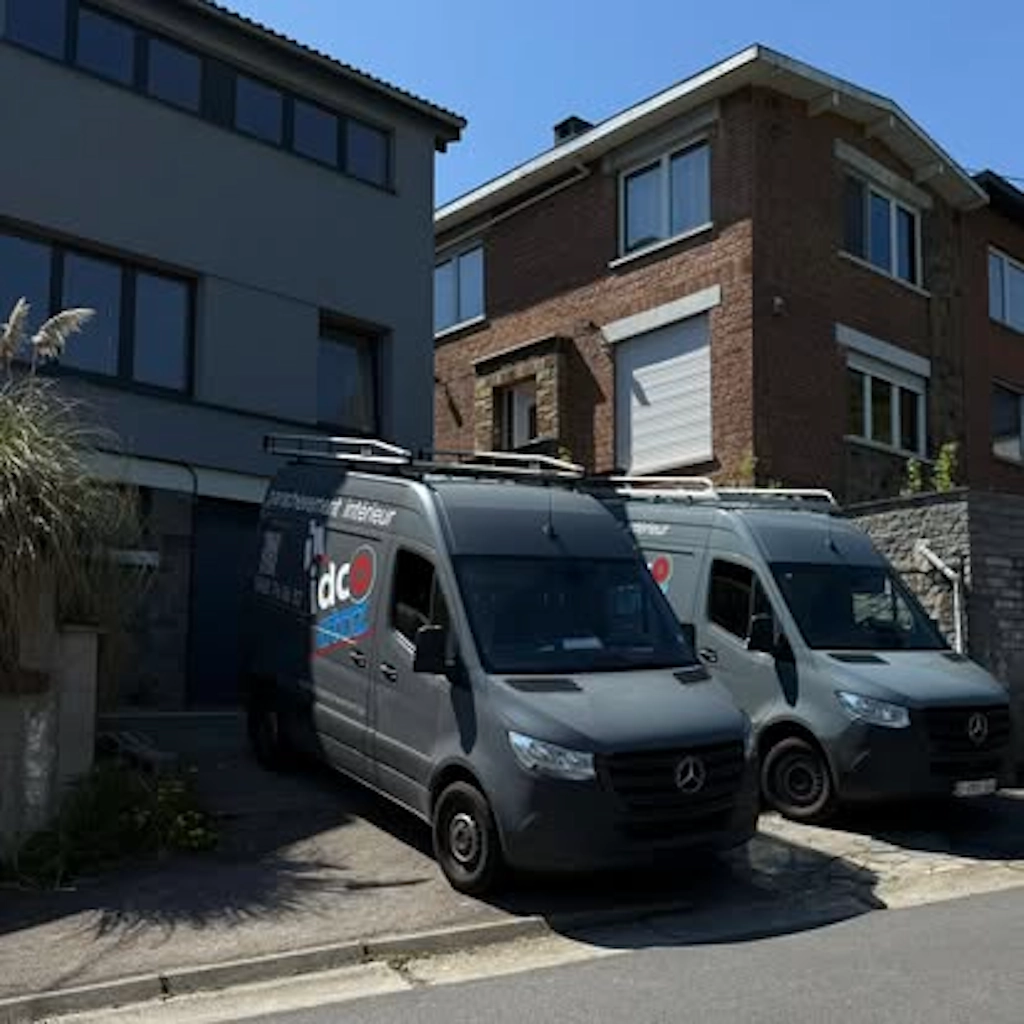 Les camionnettes de la société iDco sur le parking d'un fournisseur